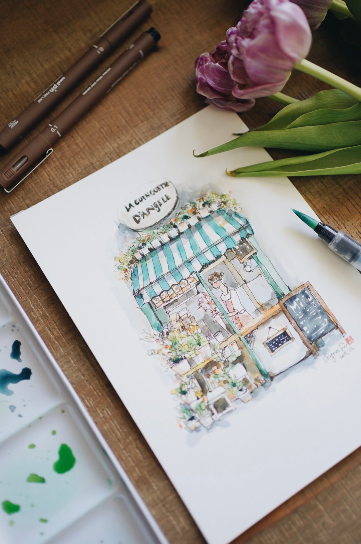 遇到好喜歡的櫥窗小店,畫下來畫下來~讓它成為明信片上的小風景,寫下祝福寄給家人好友、寄給自己,也許有天,也能擁有這樣夢想中的小店呢!