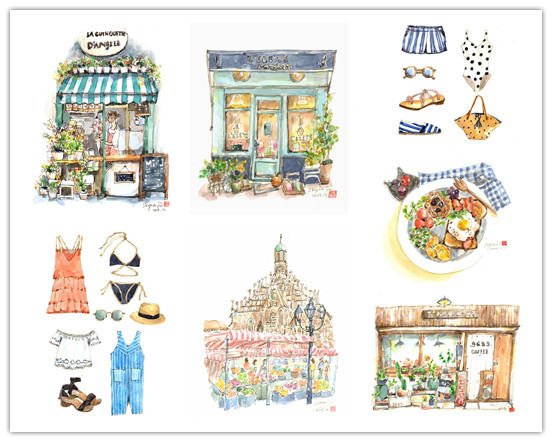 從陪伴旅行的小物件、巷弄裡的甜點美食、風格小店到美麗的街景,用畫筆記錄旅行的美好!