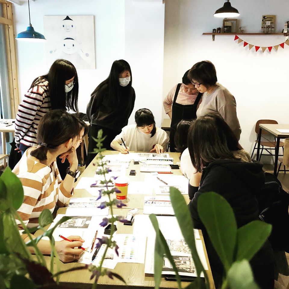 課堂上會帶領同學們完成一張小店畫作,並現場印製成美麗的明信片唷!