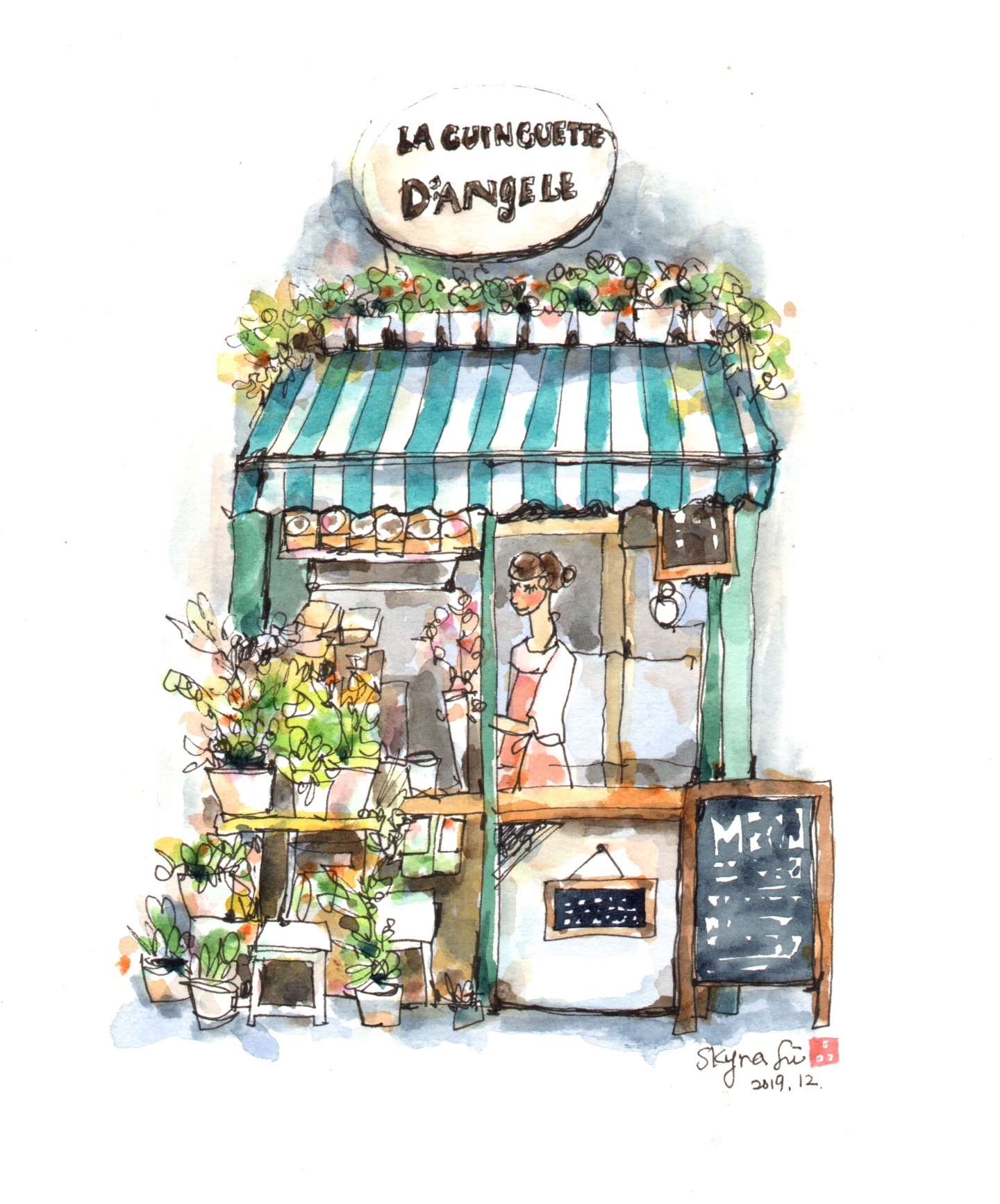*學習重點:建築物的繪圖重點、櫥窗玻璃畫法、植物點綴技巧、畫招牌小技巧