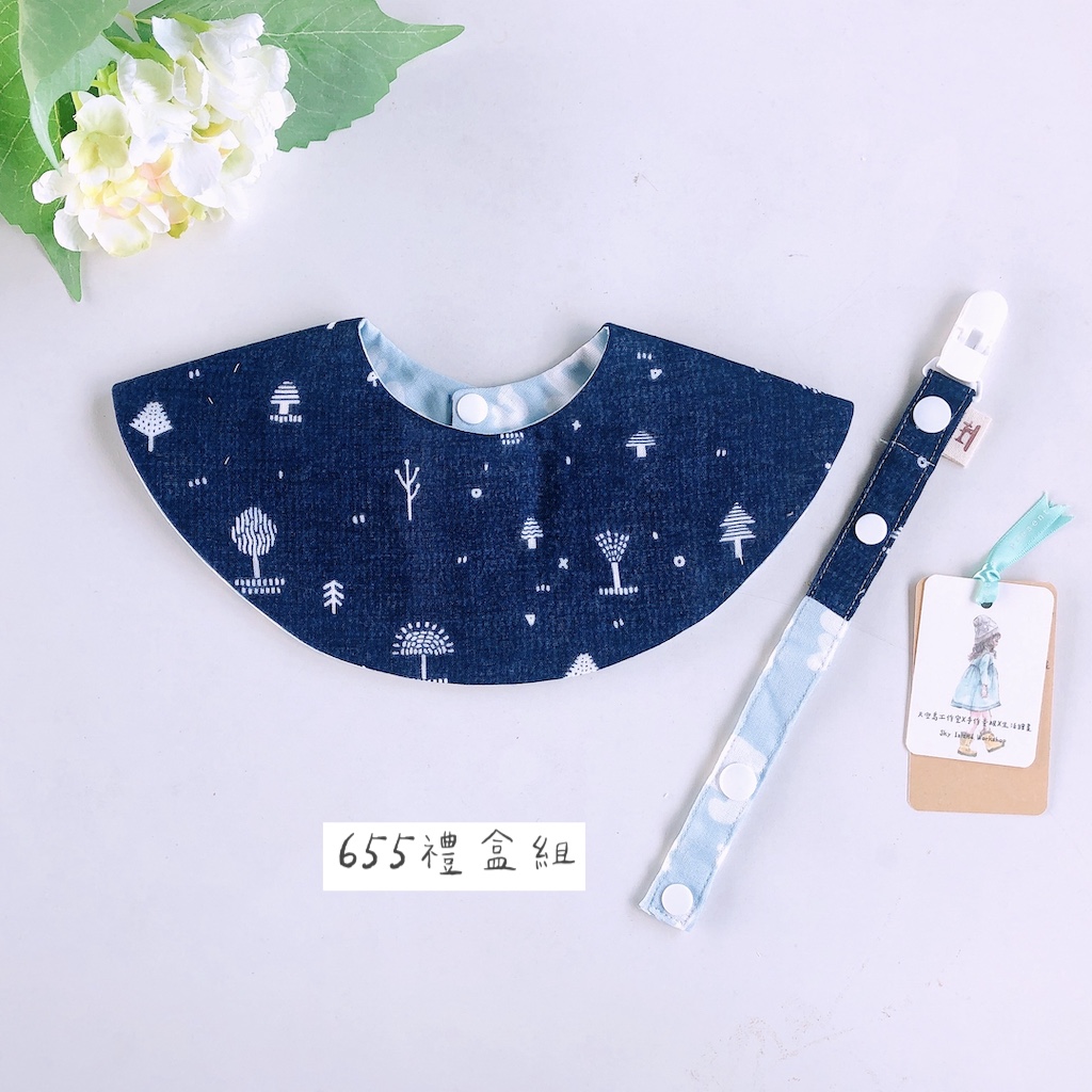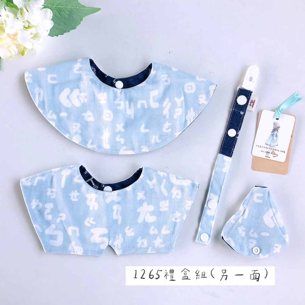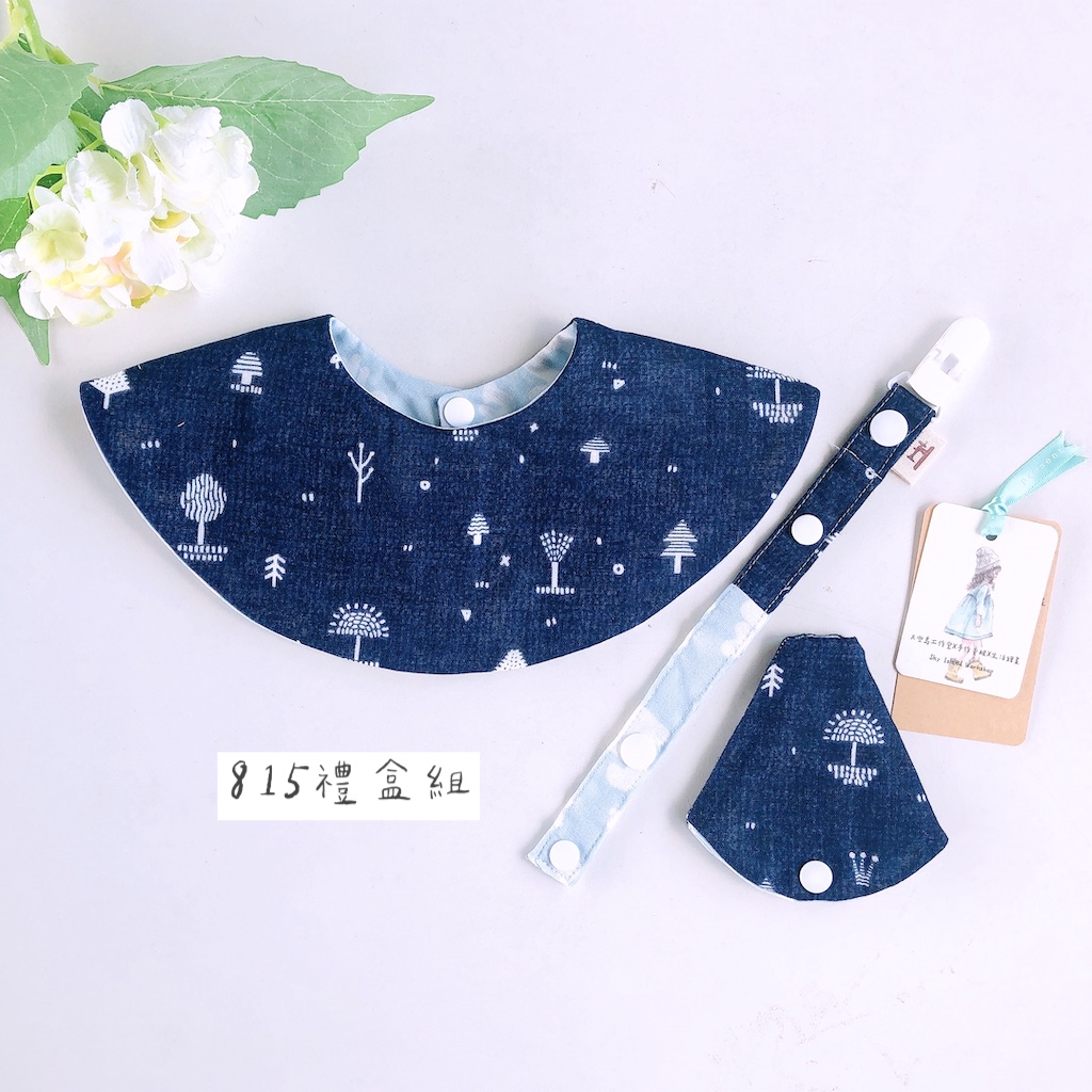 男寶 星星小樹注音 雙面圍兜/奶嘴鏈/彌月禮盒