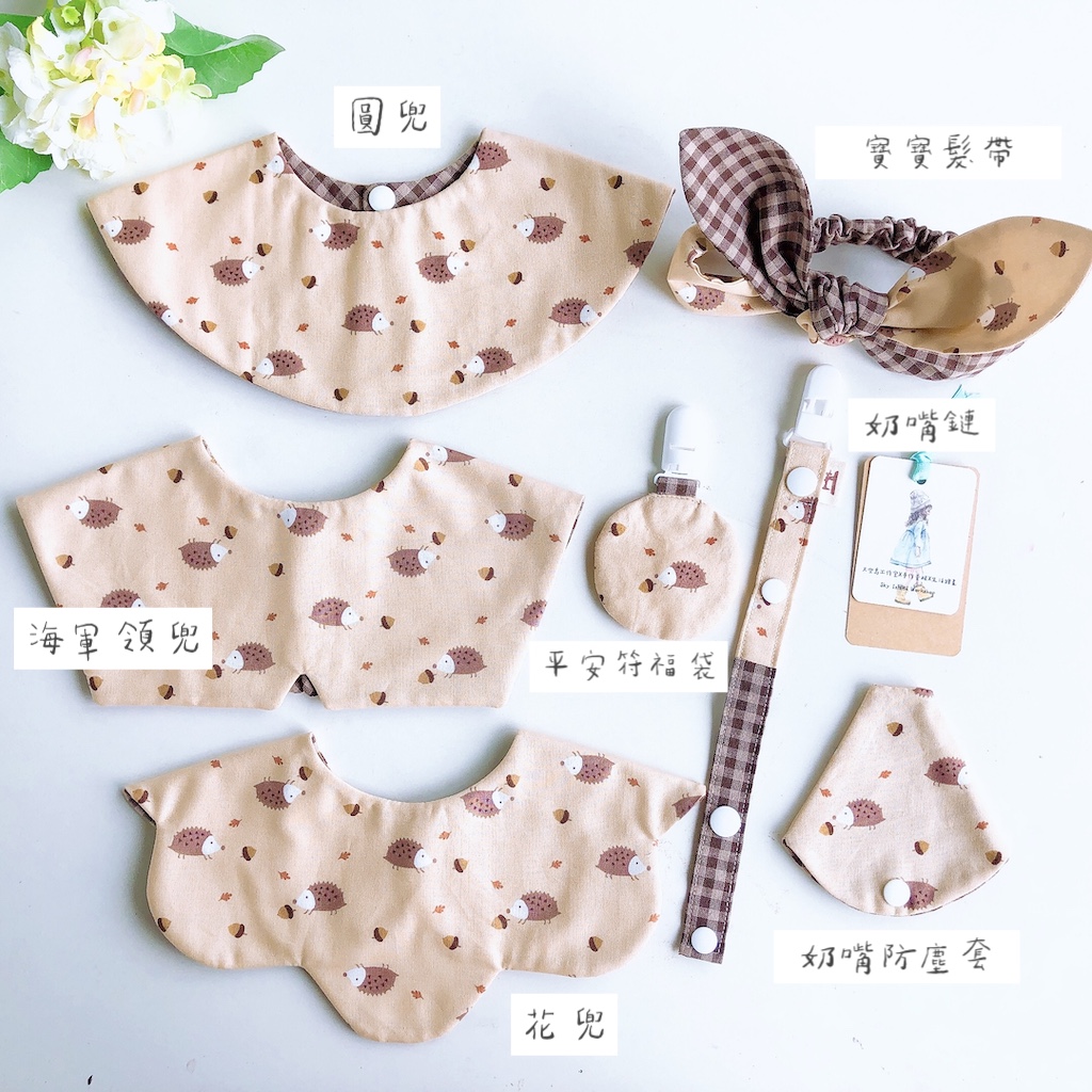 1.小刺蝟/咖啡格 雙面360度 花瓣圍兜口水巾